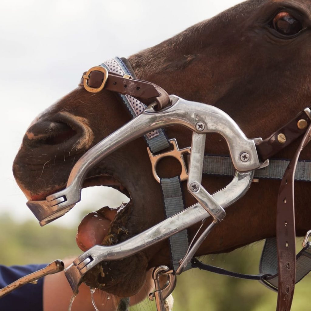 If trauma such as bruising or cuts are visible, the mouth must be rested with no bit in – many horses are kept ticking over in a hackamore. There are many causes of over-sensitivity and if this is found then veterinary assistance should be sought as xrays may be required as part of the diagnostic procedure. For instance, over the years we have found remnants, roots and sharp shards of Wolf teeth, blind wolf teeth and inflammation between the bars and the periosteal lining. Treatment is available for all of the above conditions and the prognosis is generally good. Bone spurs, if found, are not always as easily treated however, the discomfort may be avoided with the appropriate design of mouthpiece and cheek that removes the pressure from the problem area.